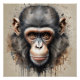 Ein Affe mit detailreicher Aquarellfarbe mit ausdrucksvollen Augen wird vor einem weichen, verschwommenen Hintergrund dargestellt. Die natürlichen Farben verstärken das lebensechte Aussehen.
