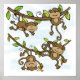 Monkey Shine T-Shirts, Bags, Mugs, Cards, Stickers, Keychains, Pillows, Journals, Mousepads, and other monkey apparel and ohrfeigen feys four cute brown monkeys swinging from tree zweig and eating bananas against a sky of blue.