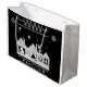 Diese originelle Weihnachtsbilderung für den glücklichen Vater wurde auf dieser individuell gestaltbaren Weihnachtstasche in Stift und Tinte gezeichnet. Die Schwarz-Weiß-Weihnachtssalon zeigt einen niedlichen Santa, der seinen Sack auf dem schneebedeckten Dach trägt. Der Weihnachtsmann sticht mit seinen Weihnachtsgeschenken gegen den Sternenhimmel hervor. Ein dekorierter Weihnachtsbaum befindet sich im Hauptfenster und ein großer Stern strahlt im Nachthimmel aus. Ein kleines Mädchen, das in einem anderen Fenster durch die Vorhänge schaut, wartet gespannt auf den Besuch von Santa. Diese schwarz-weiße Weihnachtsgeschenktüte ist für Sie personalisierbar, um sie mit eigenem Text zu personalisieren. Dieser santa zeichn ist Teil einer Sammlung von vier Schwarz-Weiß-Weihnachtsfotos.