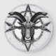 Monochrome Ziegenkopfuhr aus Baphomet. Die Ziegenuhr von Baphomet ist eine einmalige und beeindruckende Wohngestaltung, die sich perfekt für Gotik- und Okkultismus-Interessierte eignet. Die Uhr zeigt das Bild des Baphomets, einer Ziegenfigur, die oft mit dem Satanismus und dem Okkult assoziiert wird. Das Uhrengesicht befindet sich im Kopf des Baphomets und bildet damit den Mittelpunkt des Designs. Die Uhr kann an die Wand gehängt werden und es kann ein interessanter Gesprächsstarter für jeden Raum sein.