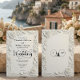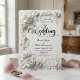 This design features a hyper-realistic digital rendering of baroque scrollwork and blooming white roses, simulating the look of hand-carved architectural plaster. The palette is a sophisticated monochrome study in ivory and cream, with soft grey shadows adding simulated depth to the serrated leaves and vines bordering the layout. Text is arranged in a formal hierarchy, utilizing an elegant black calligraphy script for names paired with a traditional serif font for event details, ensuring high contrast and legibility against the light stone-like background.