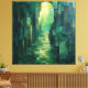 Monochromatisch grüner Abstrakter Weg mit Bogenweg Leinwanddruck