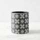 Genießen Sie Ihren morgendlichen Kaffee mit dieser Tasse. Das Design, das mit meinem eigenen Kunstwerk entworfen wurde, erinnert an alte Kaleidoskope in einem stilvollen monochromen Schema.