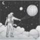Monochrome Astronaut Holding Balloon Planet Aufkleber