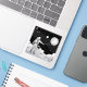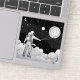 Explore the cosmos! This stunning black and white line art sticker features an astronaut standing on a cloud layer in deep space, looking up at the stars and crescent moon. The astronaut holds a string connected to a large, balloon-like planet, giving the design a unique, whimsical feel. Perfect for fans of space, science fiction, surrealism, and minimalist art. Use this decal to decorate your laptop, telescope, or notebook.