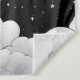 Entfliehen Sie in das Weltall mit diesem fesselnden Wandteppich. Das Design zeigt einen zarten Linienkunst-Astronauten, der inmitten einer träumerischen Szene eines sternenklaren Nachthimmels und wispiger Wolken schwebt. Der sanfte Zug an einem Seil, das an einem planetarischen Orb gebunden ist, symbolisiert Abenteuer, Neugier und die endlose Faszination des Unbekannten.