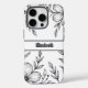 Dieser hochwertige mobile Geräteschutz zeichnet sich durch ein elegantes monochromes botanisches Line Art Design aus. Intrikierte handgezeichnet Blume, Blätter und Stiele werden in knusprigen, schwarzen Konturen auf unberührtem, weißem Hintergrund gerendert und schaffen eine klassische und raffinierte gemusterte Ästhetik. Personalisieren Sie dieses einzigartige Smartphone-Accessoire mit einem Namen wie "Elizabeth" auf der modernen grauen Bar. Sie können den Namen und alle anderen Elemente, die Sie nicht mögen, ganz einfach aus dem Designwerkzeug entfernen und so Ihren perfekten, maßgeschneiderten Handy-Protektor erstellen.