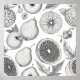 This image presents a repeating pattern of various fruits, including apples, pears, and oranges, along with accompanying leaves, all rendered in black and white. The style suggests a graphic or illustrative approach, emphasizing the shapes and textures of the fruit and foliage. The monochrome palette gives the design a classic or vintage feel, suitable for a variety of applications where a simple yet visually engaging pattern is desired.