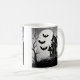 Embrace the spookiness with this stylish Black and White Haunted House Mug! Featuring a dramatic black manor on a hill, a ghostly Full Moon, and a trio of flying bats. This monochrome coffee cup is perfect for gothic decor, minimalist Halloween vibes, or any fan of classic horror art