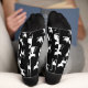 Eine Crew-Socke, die in Schwarz-Weiß-Mustern mit weißer Silhouette gefiguriert wurde