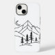 Add a touch of minimalistic elegance to your phone with this monochrome phone case featuring a tranquil mountain range surrounded by tall, graceful pine trees. The crescent moon detail adds a serene and celestial touch to the design. Perfect for those who love sleek and clean aesthetics with a natur-inspirred theme. This lightweight yet case provide ausgezeichnet against scratches and drops, making it both functional and stylish. Ideal for outdoor enthusiasts or anyone looking for a simple yet striking phone requory.