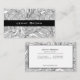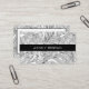 Monochrome tropische Blätter Hintergrund mit einem schwarzen Streifen in der Mitte mit einem serifenlosen Schriftart Monogramm. Die Rückseite hat ein monochromes tropisches Blätter mit persönlichen Informationen in einem serifenlosen Schriftart auf weißem Hintergrund.