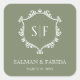 Monografische Hochzeit von Sage Green und White Wa Quadratischer Aufkleber