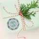 Die individuelle Gestaltung des Ferienaufklebers mit einem Rahmen aus weißen Schneeflocken mit rundem silber/grauem Monogramm-Rahmen. Personalisieren Sie das smaragdgrüne Buchstaben Initial und Weiß Skript für Ihren Nachnamen. Der dunkelblaue/graue Hintergrund kann angepasst werden.