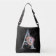 Monogramm A mit floraler Blues auf schwarzem Hintergrund Kreuz-Bag-Handtasche