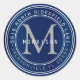 Monogram Address Label in Navy Blue 2 Runder Aufkleber