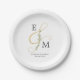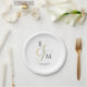 Diese schlichten botanischen Hochzeitszettel-Teller sind mit einem Monogramm mit Imitaten, goldenen Kalligraphie-Ampere und Eukalyptusgrün dekoriert und bieten moderne Eleganz, die perfekt für Hochzeiten im Frühjahr und im Sommer oder zu jeder Jahreszeit ist. Finden Sie passende Produkte in der Sammlung, oder kontaktieren Sie mich über Zazzle Chat für weitere Produkte oder andere Farbwege.