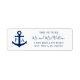 Nautische Hochzeitsstipendiaten mit einem Anker auf beiden Seiten, mit den Begriffen "The Future Mr. and Mrs." und Ihrem Nachnamen in einem Schriftart mit Handschrift und zwei Textzeilen für Ihre Rücksendeadresse, in marineblau auf weißem Hintergrund. Diese schlichten, aber eleganten Rücksendeadressen-Aufkleber sind ideal für eine Strandhochzeit im Sommer und sind eine gute Möglichkeit, um Ihren Umschlägen eine persönliche Touch hinzuzufügen.