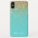 Monogram Aqua Blue Gold Glitzer Confetti Girly Case-Mate iPhone Hülle
