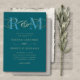 Monogram Aquamarin Aqua Turquoise QR Code Hochzeit Einladung