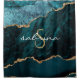 Eleganter aquamariner blauer Apache mit vergoldetem Imitat-Glitzer kombiniert in diesem Design. Personalisieren Sie es mit Ihrem Monogramm Initial in goldfarbenem dekorativen Schriftart und Ihrem Namen in weißer Handschrift Skript.
