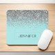 Silver und Aqua Blue Aquamarine Imitate Glitzer Sparkle Elegant und moderne schicke trendy Luxury Mit Monogramm Mouse Pad. Diese Monogramm - fügen Sie Ihren eigenen Namen personized mousepad kann aktualisiert werden mit Ihrem Namen.
