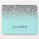 Monogram Aquamarin Blue Silver Glam Glitzer Name Mousepad