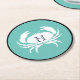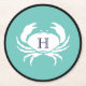 Monogram Aquamarin Blue White Navy Blue Crab Nauti Runder Pappuntersetzer