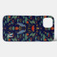 Mit Monogramm marineblaue Kunst & Handwerk inspirierte Iphone-Gehäuse mit einem Biodiversitätsheron-Teich-Design von Anne Londez mit Held, Eule, Frosch, Ente und Wasserlillien. Es ist perfekt für Collage, Junk Journaling, Geschenkverpackung, Decodierung und vieles mehr.