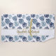 Monogram Azure Blue Tropical Blätter Gold Newlywed Strandtuch