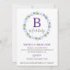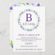 Ein großes, mit Monogramm und lila "B" befindet sich in einer sanft farbigen Blume für unser B für Baby Shower Einladungen.