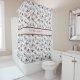 Monogram Bird White Gray Silver Branch Red Berries Duschvorhang