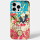 Monogram Birdcage Bird Pink Coral Aqua Damask Telefongehäuse