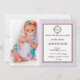 Einfach schön - die perfekte Personalisierte Monogram Baby Announcement, um allen Freunden und der Familie die Geburt Ihres Kindes bekannt zu geben. Mit einem Foto vorne auf weißem Hintergrund mit lila vertikalen Linien und allen Babyinformationen.