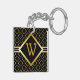 monogram black and faux gold stripes initial only schlüsselanhänger