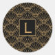 Monogram Black and Gold Art Deco Lüftermotiv Blume Runder Aufkleber