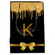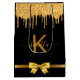 Eine Liebestasche für eine mädchenhafte und glamouröse Babydusche oder Brautparty. Schwarzer Hintergrund verziert mit Imitaten Gold Glitzer Tropfen, Farbe tropfend aussehen. Personalisieren und fügen Sie Ihren Namen und Monogramm-Buchstaben. Der Name wird mit einem angesagten, handgeschriebenen Stil-Skript mit Swashes geschrieben. Um die Swashes behalten, löschen Sie nur den Beispielnamen, verlass die Leerzeichen oder Emoji's vor und nach dem Namen.