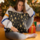 Dekorieren Sie Ihre Zuhause zu Weihnachten mit unserem inspirierten, weihnachtlichen Kissen. Schöner goldener Weihnachtsbaum und Schneeflocken auf schwarzem Hintergrund geben ihm einen festlichen Look. Sie können dieses Design mit Ihren Monogrammen, Initialen oder Namen anpassen oder das Monogramm entfernen, indem Sie auf den Button "Anpassen" klicken. Klicken Sie auf "Weiter anpassen", um die Schriftart und Farben des Textes zu ändern. Perfektes Weihnachtsgeschenk für Ihre Familie und Freunde und Sie werden absolut eines für sich selbst gewollt. Bitte kontaktieren Sie mich per E-Mail, wenn Sie Hilfe oder passende Produkte benötigen: shabnamahsanatzazzle@gmail.com