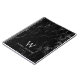 Ein einfaches, aber modernes Design mit schwarzem Marmorhintergrund und im unteren Teil ein großes weißes Monogramm mit dem Namen in weißen Kappen und dem Betreff ("Noten") im unteren Gehäuse.