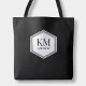 Monogram Black Modern Elegant Simple Individuelle Name Tote Bag verfügt über einen soliden schwarzen Hintergrund mit einem einfachen hexagonförmigen Element auf der Vorderseite. Das Hexagon präsentiert ein personalisiertes Monogramm und einen Namen in einem zeitlosen schwarzen Schriftart und schafft ein elegantes, minimalistisches und modernes Aussehen. Diese stilvolle Tasche eignet sich perfekt zum Einkaufen und für den täglichen Gebrauch und macht ihr ein wohlüberlegtes Geburtstagsgeschenk. Vollständig anpassbar, um Ihren Stil anzupassen. Brauchen Sie mehr Hilfe? Klicken Sie auf die Schaltfläche "Nachricht" unten. Gerne helfen wir Ihnen bei der Abwicklung von Kundenaufträgen.
