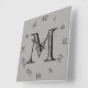 Monogram Black Roman Numbers on Grey Wccn Quadratische Wanduhr