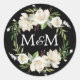 Monogram Black Watercolor White Floral Wedding Runder Aufkleber