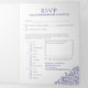 Handgezeichnete Ernteblattbotanische Kunsthochzeit in einer Einladung. Personalisieren Sie diese abnehmbare Antwort Hochzeitseinladung mit Ihren eigenen Einzelheiten der Hochzeitsfeier, Zeitplan, Unterkunft und andere Informationen sowie Mahlzeiten Optionen, Antworten. Einfach blaues lila Blatt Design, das Ihre eigenen Monogramm-Initialen auf weißem Hintergrund umkreist. Andere Farben und passende Hochzeitsartikel sind erhältlich. © Original Blatt zeichn und Design von Sarah Trett für www.mylittleedenweddings.com auf Zazzle.