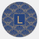 Monogram Blue and Gold Art Deco Lüfter Motif Blume Runder Aufkleber