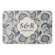 Monogram Blue & Cream Damask Floral Wedding Badematte