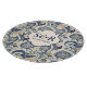 Ein Schnittbrett mit einem Vintagen monogramm blauen und cremefarbenen Damast Blumendesign und den Initialen und dem Hochzeitstermin der Braut und des Bräutigams.