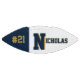 Es handelt sich um einen Fußball in Vollgröße mit einem Panel, das mit einem Monogramm-Namen (großer erster Buchstabe) und einer einheitlichen Zahl in beliebten Unis entworfen wurde. Dieses hier ist in blau und in einem metallisch aussehenden Gold dargestellt. Der Fußball ist auch mit zwei weißen Paneelen erhältlich, sodass ein 2. Panel Designs oder Raum für Unterschriften enthalten kann.