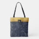 Mit Monogramm Tasche mit einem eleganten, blauen Marmor-Texturmuster-Druck und ein peronalisiertes Monogramm oben auf einem Imitat goldenes Texturband oben.