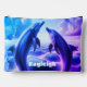 Der Monogram Blue Lila Delphins Ocean Accessoire Pouch präsentiert mit seinem lebendigen ozeanischen Design verspielte Delphine vor einem beruhigenden blau/lila Hintergrund. Dieser große Beutel eignet sich hervorragend für die Organisation Ihrer Essentials mit Stil und einer personalisierten Touch durch maßgeschneiderte Programmierung.
