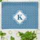Eine blaue Mandala über einen geometrischen Hintergrund, den Sie einfach mit Ihrem eigenen Monogramm personalisieren können.
